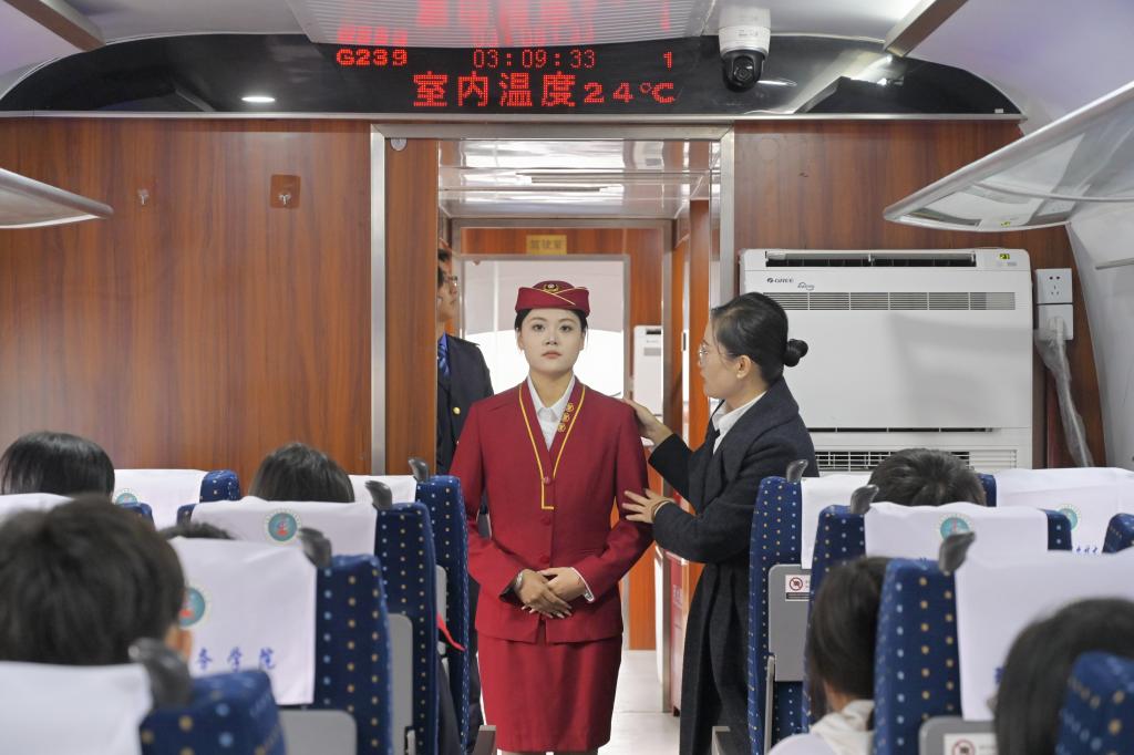 研学期间,师生们参观了校史馆,在焊接实训中心、汽车实训中心、高铁模拟仓、形体室等实训基地进行了现场实操体验。