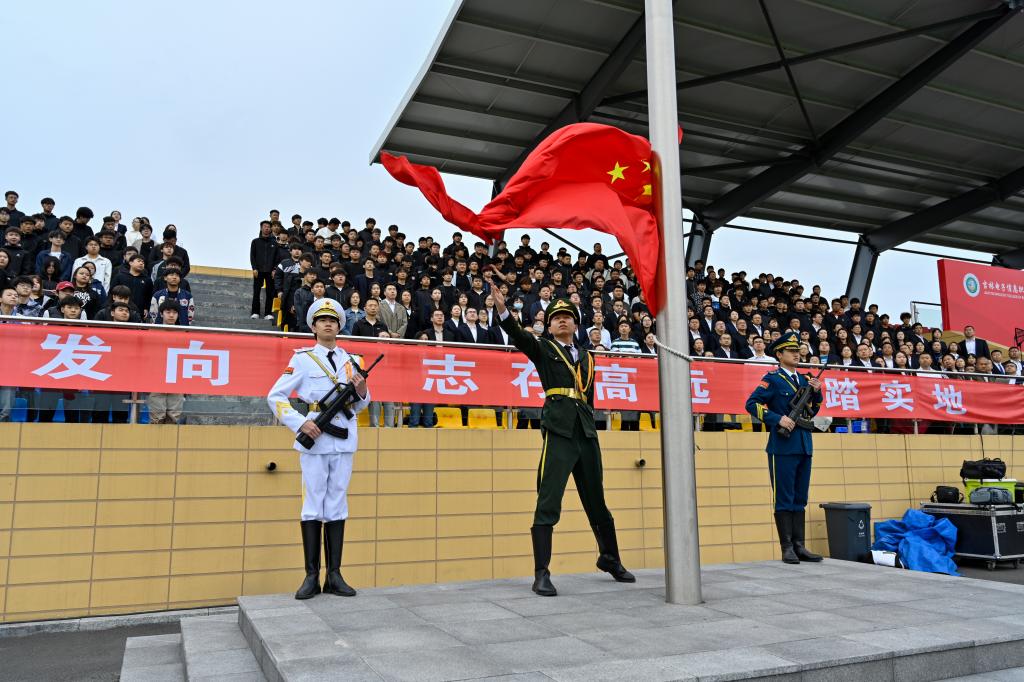 大会在庄严的升国旗仪式中拉开帷幕。党委书记何晓杰代表学校向承训部队赠送锦旗。